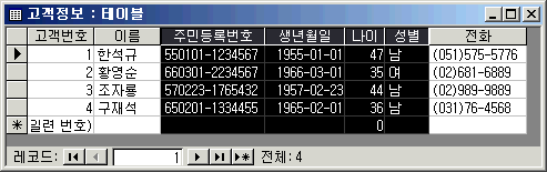 °í°´Á¤º¸¶õ ±â´ÉÀûÀÎ ÁÖÁ¦·Î Å×À̺íÀÌ ±¸¼ºµÇ¾î ÀÖÀ¸¸ç °í°´¹øÈ£¶ó´Â ±âº»Å°¿¡ ´ëÇØ ÀÇÁ¸ÀûÀÌ Á¤º¸·Î ±¸¼ºµÇ¾î ÀÖ½À´Ï´Ù. [¼ºº°] ´ÜÀÏ