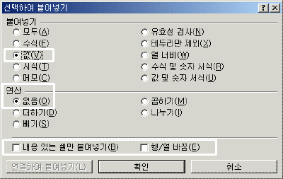 SkipBlanks´Â À§ÀÇ ´ëÈ»óÀÚ¿¡¼ [³»¿ëÀÖ´Â ¼¿¸¸ ºÙ¿©³Ö±â]¿¡ ÇØ´çÇÕ´Ï´Ù. Transpose´Â ¼³¸í ¾Èµå·Áµµ ¾Æ½Ã°ÚÁÒ~