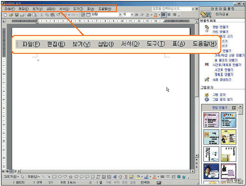¿öµå ȸéÀÇ ¸Ç À§¿¡ À§¿Í °°ÀÌ ÀûÇô ÀÖ´Â °ÍµéÀ» '¸Þ´º Ç¥½ÃÁÙ'À̶ó°í ºÒ·¯¿ä. ȸ鿡¼ ¸Þ´ºÇ¥½ÃÁÙÀ» Àß Ã£¾Ò³ª¿ä?