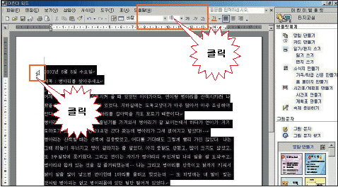 ¹®¼ÀÇ Ã³À½ ¿ÞÂÊ¿¡ ¸¶¿ì½º¸¦ µÎ°í ¼¼ ¹ø ´·¯¼ ¹®¼ Àüü¸¦ ¼±ÅÃÇÕ´Ï´Ù. µµ±¸ ¸ðÀ½ÀÇ ¸¦ ´·¯¼ ¿øÇÏ´Â ±ÛÀÚÀÇ Å©±â¸¦ ¼±ÅÃÇØ º¸¼¼¿ä.