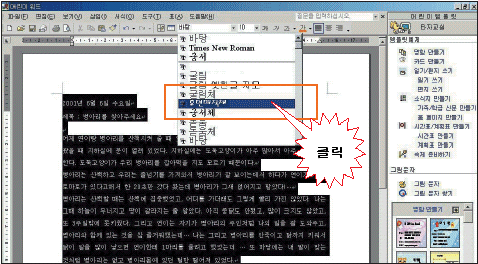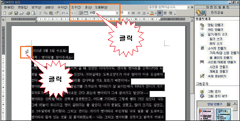 ¹®¼ÀÇ Ã³À½ ¿ÞÂÊ¿¡ ¸¶¿ì½º¸¦ µÎ°í ¼¼ ¹ø ´·¯¼ ¹®¼ Àüü¸¦ ¼±ÅÃÇÕ´Ï´Ù. µµ±¸ ¸ðÀ½ÀÇ ¾ÆÀÌÄÜÀ» ´·¯¼ ¿øÇÏ´Â ±ÛÀÚÀÇ ¸ð¾çÀ» ¼±ÅÃÇØ º¸¼¼¿ä.