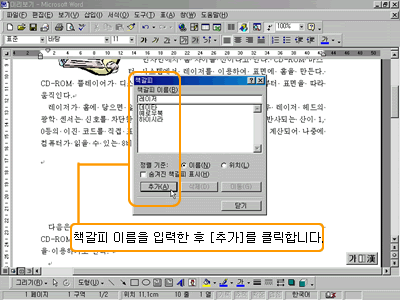 Ã¥°¥ÇǸ¦ ÁöÁ¤ÇÒ °÷¿¡ Ä¿¼¸¦ À§Ä¡½ÃŲ ÈÄ [»ðÀÔ-Ã¥°¥ÇÇ]¸¦