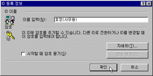 2. [ID µî·Ï Á¤º¸] ´ëÈ »óÀÚ°¡ ³ªÅ¸³ª¸é À̸§À» ÀÔ·ÂÇÏ´Â °÷¿¡ º¯°æÇÒ À̸§À» ÀÔ·ÂÇϰí [È®ÀÎ] ´ÜÃ߸¦ Ŭ¸¯Çϸé [ID °ü¸®] âÀ¸·Î À̵¿ÇÏ°Ô µË´Ï´Ù.