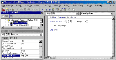 9. Visual Basic Editor âÀÇ À̺¥Æ® ÇÁ·Î½ÃÀú¿¡ Me.Requery¸¦ ÀÔ·ÂÇÑ ÈÄ
