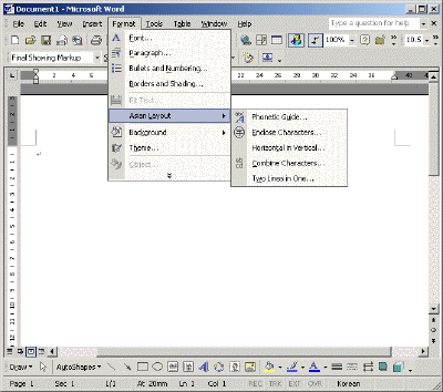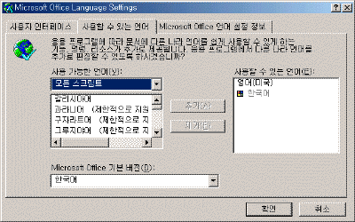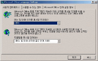 Microsoft Office XP ¾ð¾î ¼³Á¤À» ¼±ÅÃÇÑ´Ù.