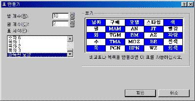 ¨é Ç¥ ¸¸µé±â ´ëÈ »óÀÚ°¡ ³ªÅ¸³ª¸é Çà °³¼ö¿Í ¿ °³¼ö¸¦ ÁöÁ¤ÇÑ´Ù. Ç¥ ¼½Ä¿¡¼´Â