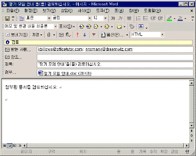 ¨ç A°¡ ¹®¼¸¦ ÀÛ¼ºÇÑ ÈÄ B, C¿¡°Ô °ËÅä¿ë ¸ÞÀÏ·Î º¸³»±â À§ÇØ ÆÄÀÏ-º¸³»±â-ÀÌ ÆÄÀÏÀ» °ËÅä¿ë ¸ÞÀÏ·Î ¸Þ´º¸¦ ¼±ÅÃÇÑ´Ù.