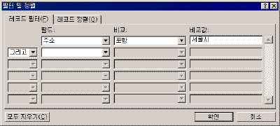 ÇÊÅÍ ¹× Á¤·Ä ´ëÈ »óÀÚ°¡ ³ªÅ¸³ª¸é Çʵå:ÁÖ¼Ò, ºñ±³: Æ÷ÇÔ, ºñ±³°ª: ¼¿ï½Ã¸¦ ÁöÁ¤ÇÑ´Ù.