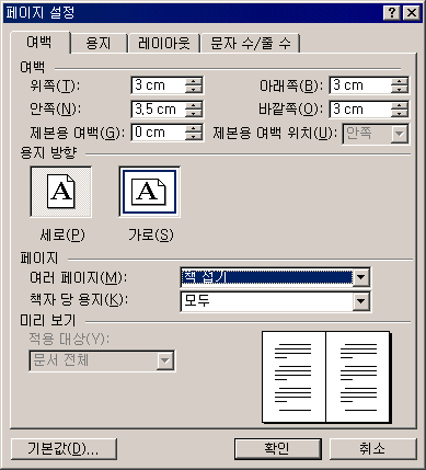¹®¼¿¡¼ »ç¿ëÇϸç, ¿ëÁö ¹æÇâÀº ÀÚµ¿À¸·Î °¡·Î·Î º¯°æµÈ´Ù. ÆÄÀÏ-ÆäÀÌÁö ¼³Á¤ ¸Þ´ºÀÇ ¿©¹é ÅÇÀ» ¼±ÅÃÇÏ¿© ¿©·¯ ÆäÀÌÁö ¸ñ·Ï¿¡¼