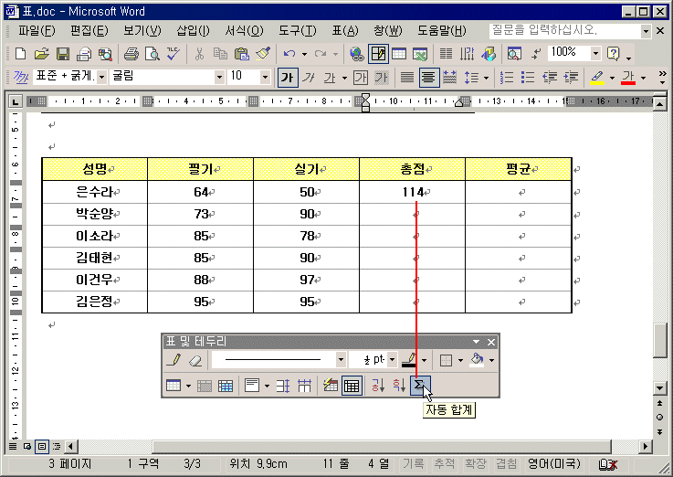 ¨ç °è»êµÈ °á°ú°ªÀ» ±¸ÇÒ ¼¿¿¡ Ä¿¼¸¦ µÎ°í Ç¥ ¹× Å׵θ® µµ±¸ ¸ðÀ½¿¡¼ ÀÚµ¿ ÇÕ°è ¾ÆÀÌÄÜ