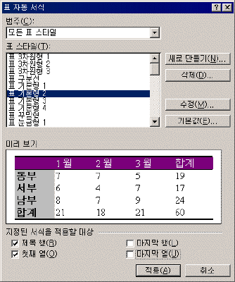 Ç¥ ÀÚµ¿ ¼½Ä ´ëÈ »óÀÚ¿¡¼ »õ·Î ¸¸µé±â ´ÜÃ߸¦ Ŭ¸¯ÇÑ´Ù. Ç¥ ½ºÅ¸ÀÏ ´ëÈ »óÀÚ°¡