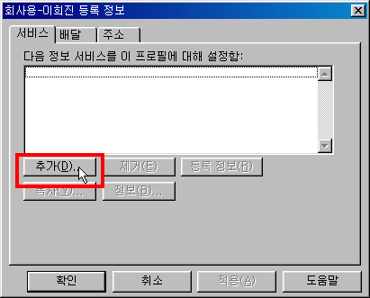 ¨í [ÇÁ·ÎÇÊ ¼ºñ½º Ãß°¡] ȸéÀÌ ³ªÅ¸³³´Ï´Ù ¿©±â¿¡ ÀÚ½ÅÀÌ »ç¿ëÇÒ ÇÁ·ÎÇÊ¿¡ [ÀÎÅÍ³Ý ÀüÀÚ ¸ÞÀÏ] ¼ºñ½º¸¦ ¼±ÅÃÇϰí [È®ÀÎ]À» ´©¸¨´Ï´Ù.