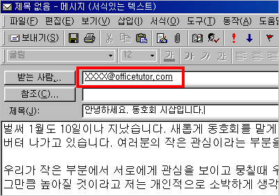 ¨é ¸Þ½ÃÁö âÀÌ ¿¸®¸é [¹Þ´Â »ç¶÷]ÁÖ¼Ò°¡ ÀÚµ¿À¸·Î ÀԷµ˴ϴÙ. Á¦¸ñ°ú ¸Þ½ÃÁö ³»¿ëÀ» ÀÔ·ÂÇϰí, [º¸³»±â]´ÜÃ߸¦ ´©¸¨´Ï´Ù.