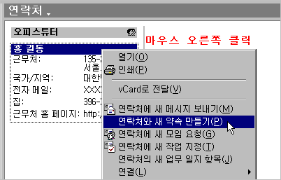 ¨è ´ÜÃà¸Þ´º¿¡¼ [¿¬¶ôó¿Í »õ ¾à¼Ó ¸¸µé±â]¸¦ ¼±ÅÃÇÕ´Ï´Ù.