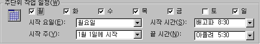 ÀÏÁ¤À» ¼³Á¤ÇÕ´Ï´Ù. ÀÏÁÖÀÏ Áß ÀÛ¾÷ ÀÏÀÌ ¾ðÁ¦ ÀÎÁö,
