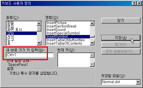 "1"À» ´·¯ "Ctrl+1"ÀÌ ¹Ù·Î°¡±â Ű·Î