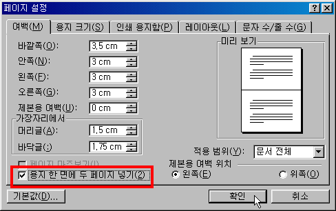 ¨ç [ÆÄÀÏ]-[ÆäÀÌÁö¼³Á¤]¿¡¼ [¿©¹é]ÅÇÀ» ´·¯ '¿ëÁö ÇÑ