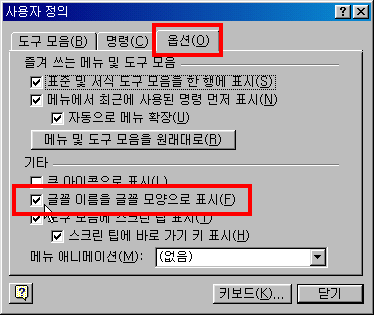Á¤ÀÇ]¸Þ´ºÀÇ [¿É¼Ç]ÅÇ¿¡¼ '±Û²Ã À̸§À» ±Û²Ã