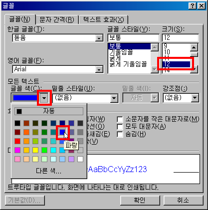 ¨ê ±Û²Ã âÀÌ ³ª¿À¸é ±Û²Ã Å©±â¿Í ±Û²Ã »ö»óÀ»