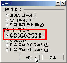³ª´©±â]À̰í, ¾Õ ÆäÀÌÁö¿Í ´Ù¸¥ ¿ëÁö³ª ¿©¹éÀ» ¼³Á¤ÇÒ